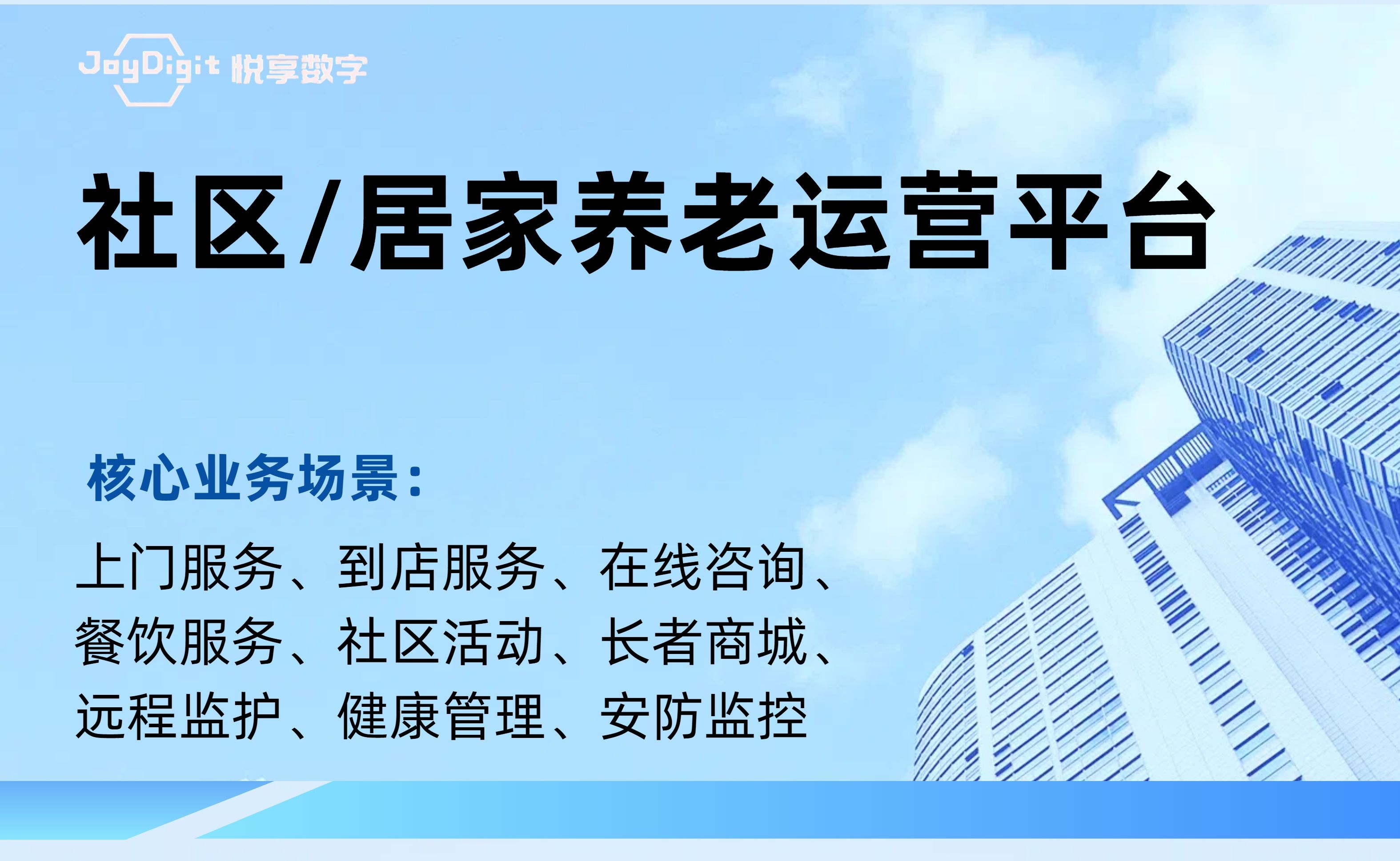 北京悅享數(shù)字科技有限公司(JoyDigit?,簡(jiǎn)稱悅享數(shù)字?)作為養(yǎng)老行業(yè)數(shù)字化轉(zhuǎn)型的引領(lǐng)者,以“數(shù)字驅(qū)動(dòng)健康?,智慧賦能養(yǎng)老?”為愿景,以iSpeed作為養(yǎng)老行業(yè)數(shù)字化轉(zhuǎn)型的標(biāo)準(zhǔn),通過(guò)融合大數(shù)據(jù)、人工智能、物聯(lián)網(wǎng)、區(qū)塊鏈和移動(dòng)互聯(lián)等創(chuàng)新技術(shù),打造了領(lǐng)先的數(shù)字化養(yǎng)老解決方案-悅享養(yǎng)老數(shù)字化平臺(tái)(JoyDigit NexSight Platform),端到端覆蓋了數(shù)字化渠道與銷售、業(yè)務(wù)流程標(biāo)準(zhǔn)化與智...